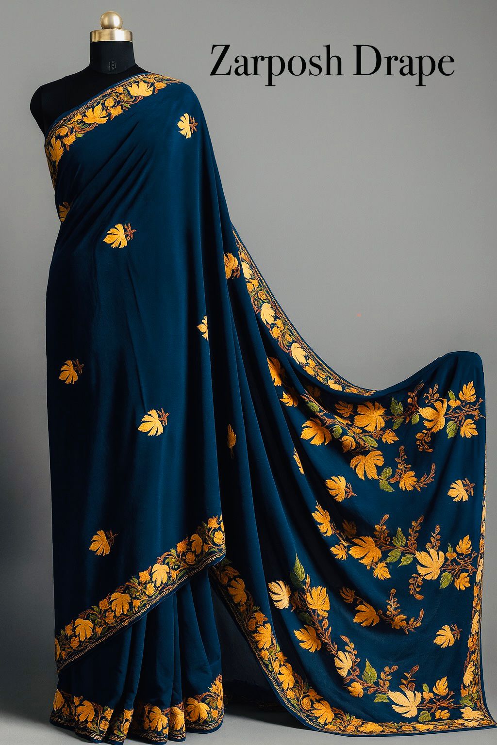 Zarposh Drape blooms in a deep midnight blue — adorned with exquisite Aari embroidery.